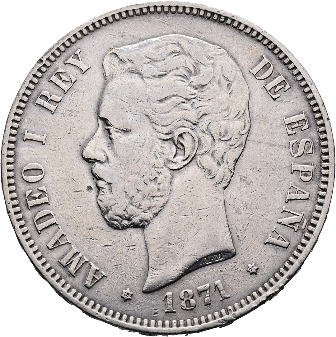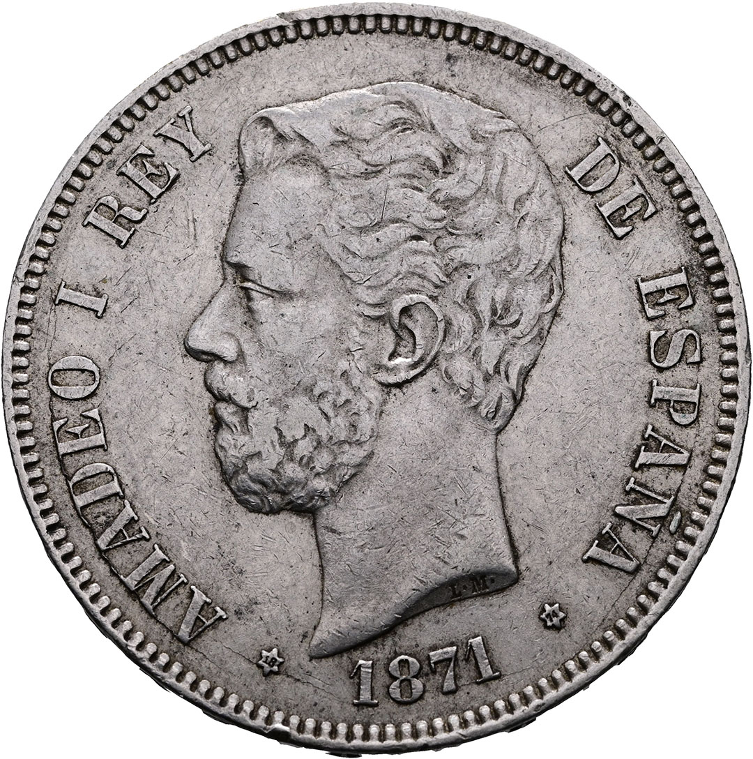 5 Pesetas. AR. 1871 *18-71 SDM. 24.91g. Cal.1. BC+. ...
