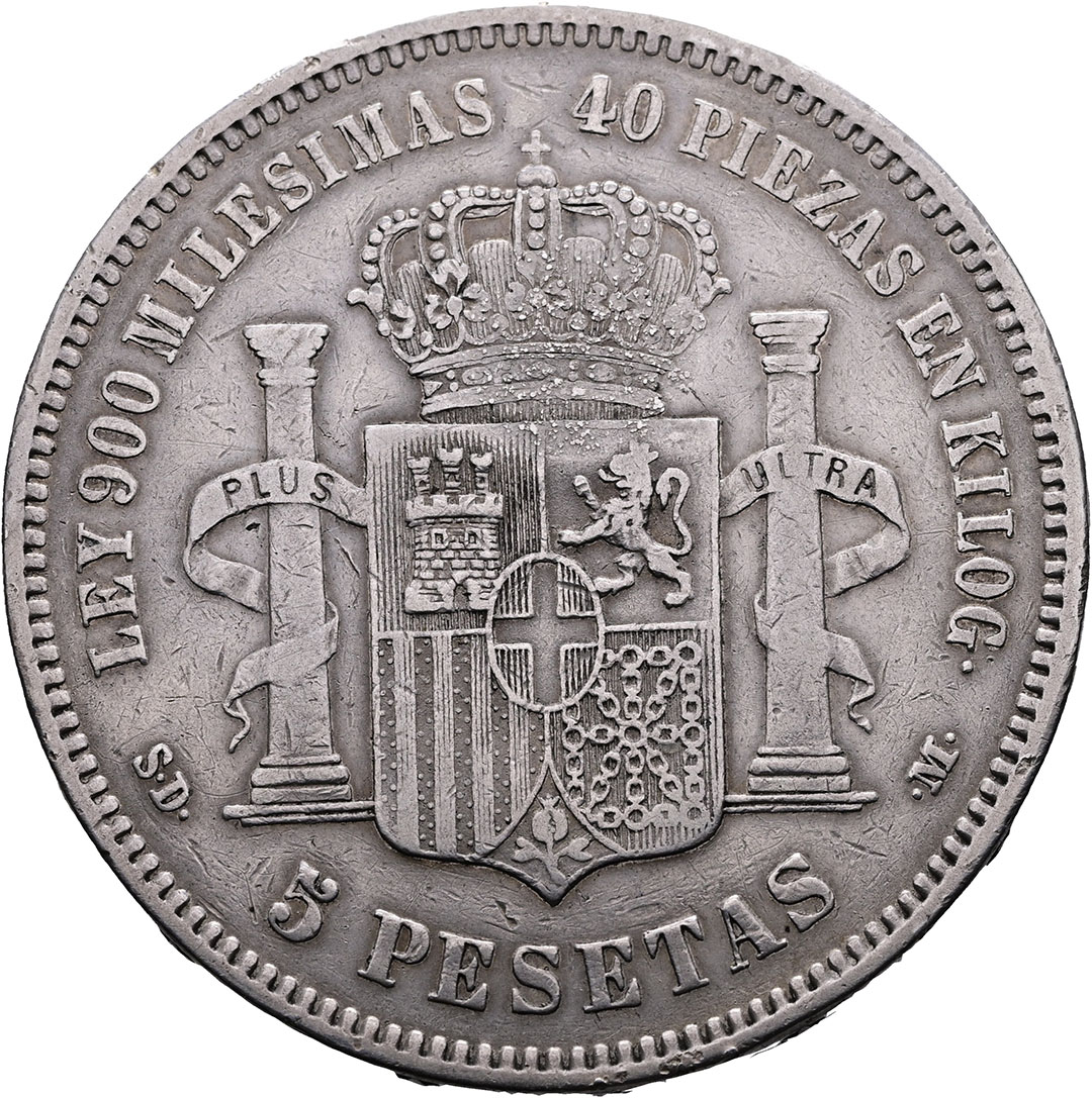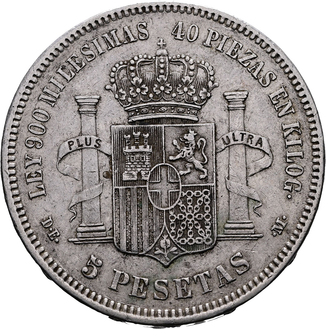 5 Pesetas. AR. 1875 *18-75 DEM. 24.86g. Cal.35. Primera estrella no vi...