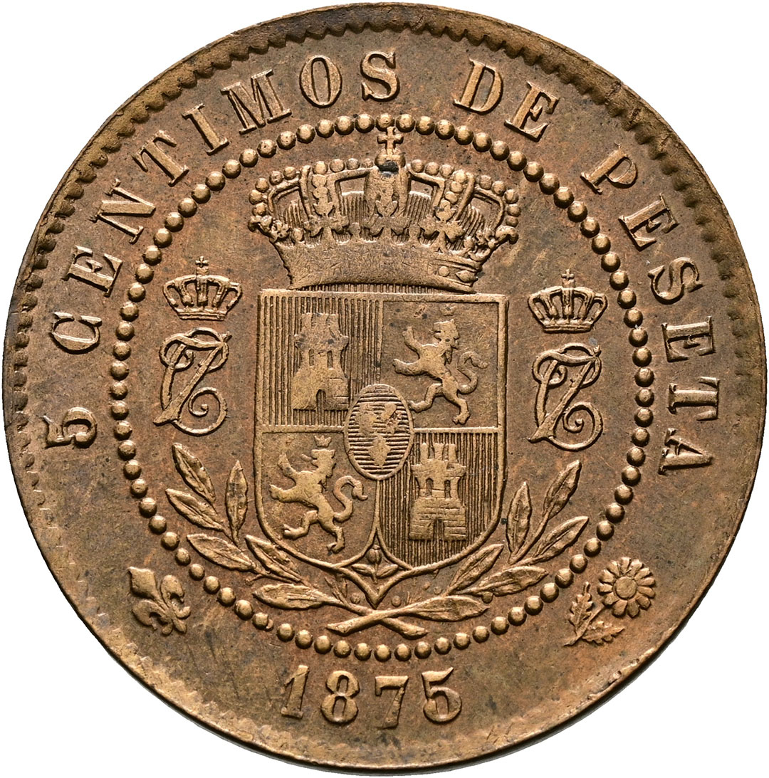 5 Céntimos. AE. Oñate. 1875. 5.05g. Cal.2. Muy bonito color. Muy esc...