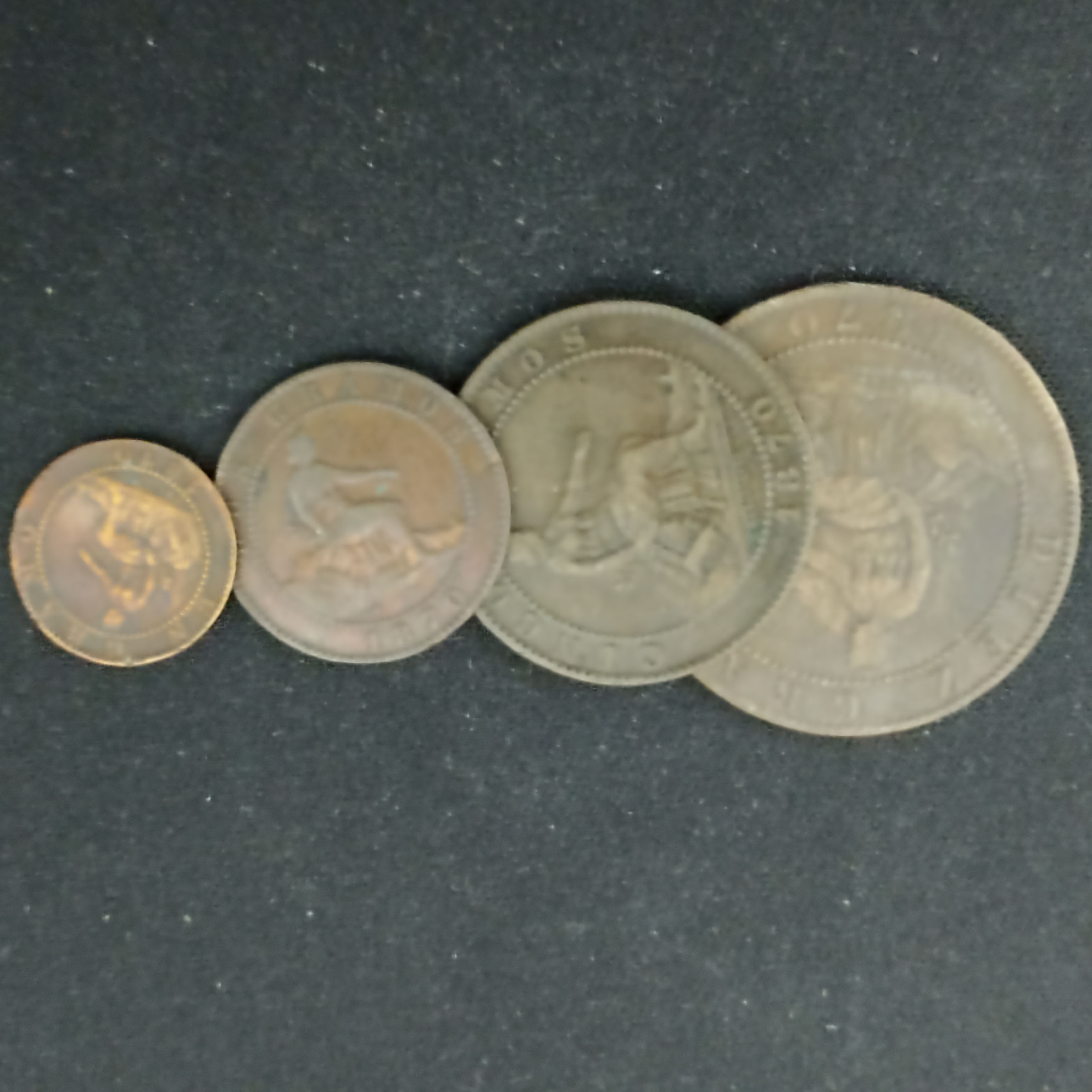 Serie de 4 valores. AE. 1, 2, 5 y 10 Céntimos 1870. MBC a BC. ...