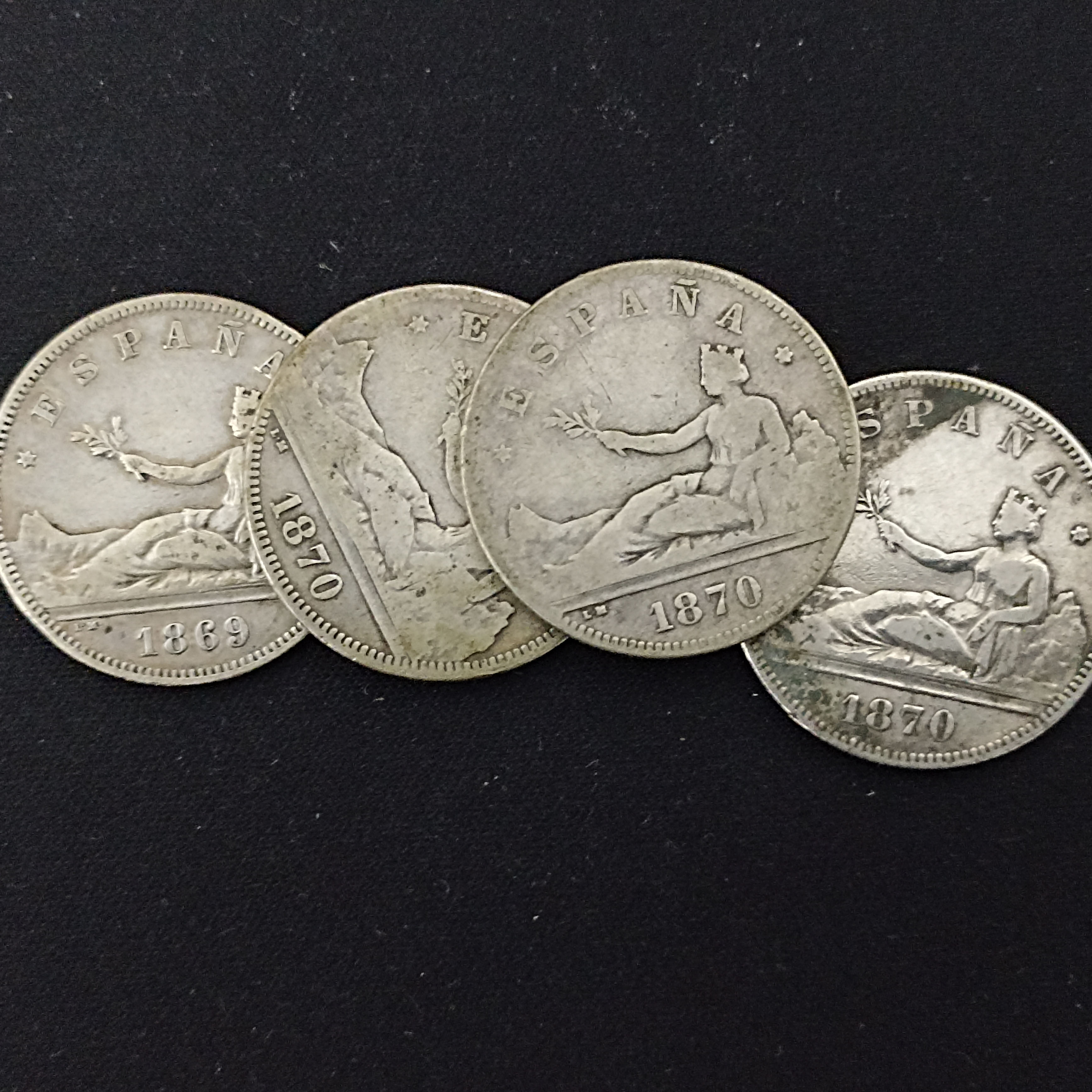2 Pesetas. AR. Lote de 4 monedas. 1869 y 1870 (3). MBC a BC. ...
