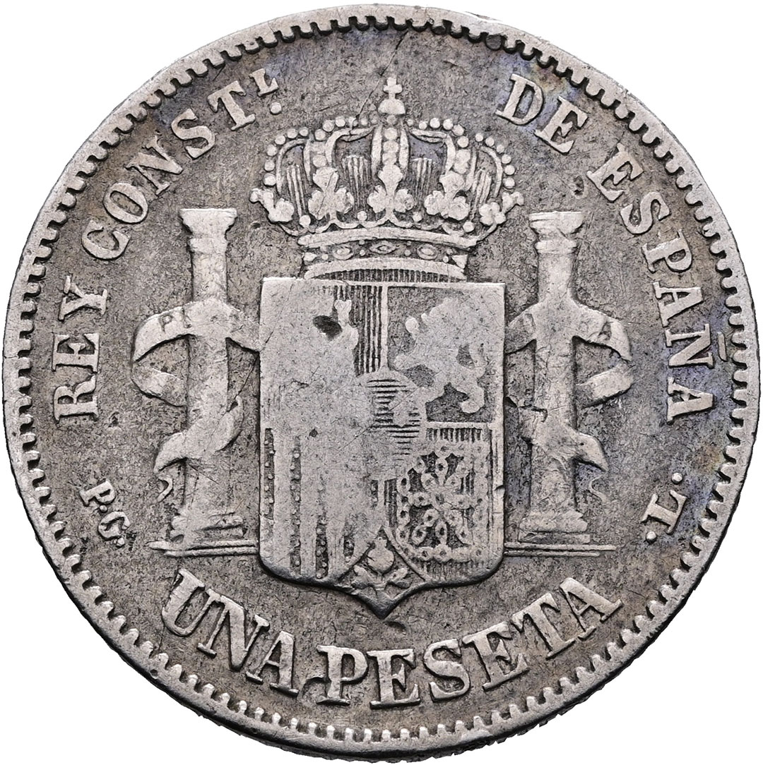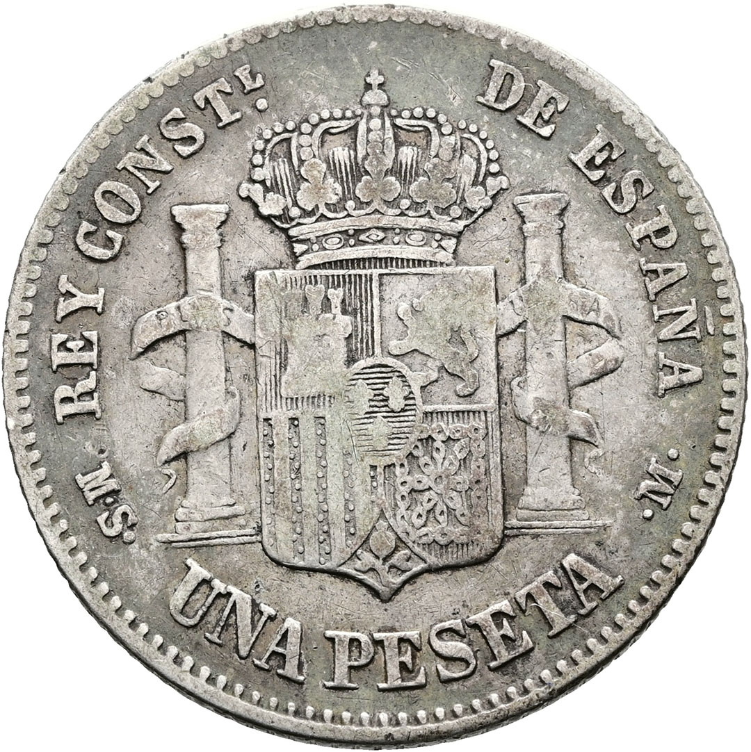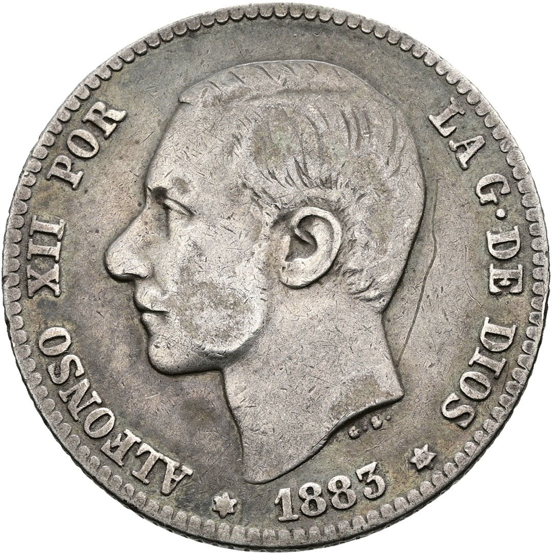 Peseta. AR. 1883 *18-83 MSM. 4.86g. Cal.21. Tonalidad y raya. Primera ...