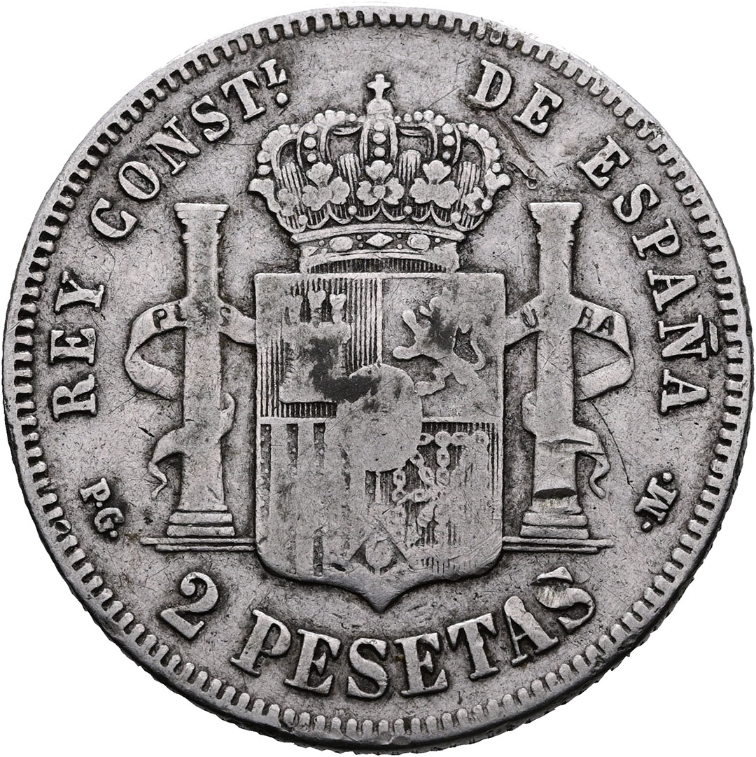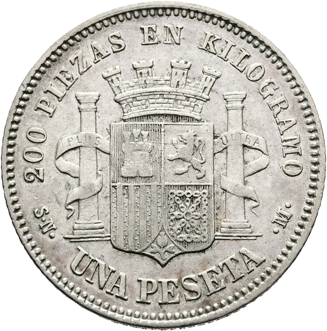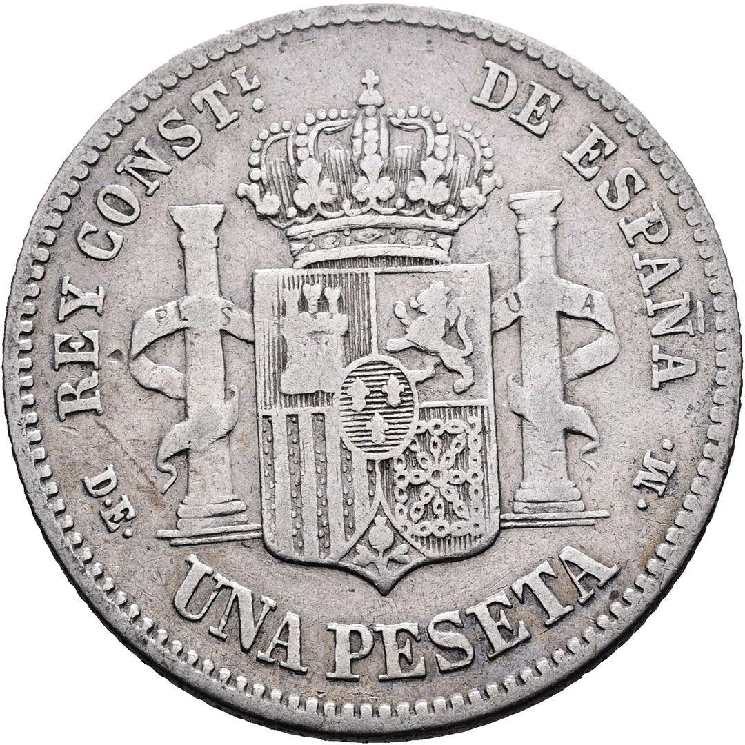 Peseta. AR. 1883 *18-83 MSM. 4.86g. Cal.21. Tonalidad y raya. Primera ...