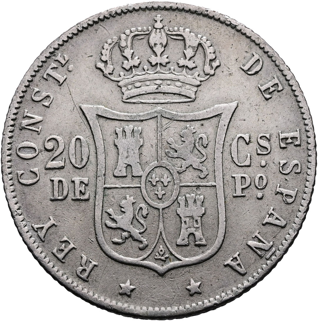20 Centavos de Peso. AR. Manila. 1882. 5.01g. Cal.107. Rayitas. (BC+)....