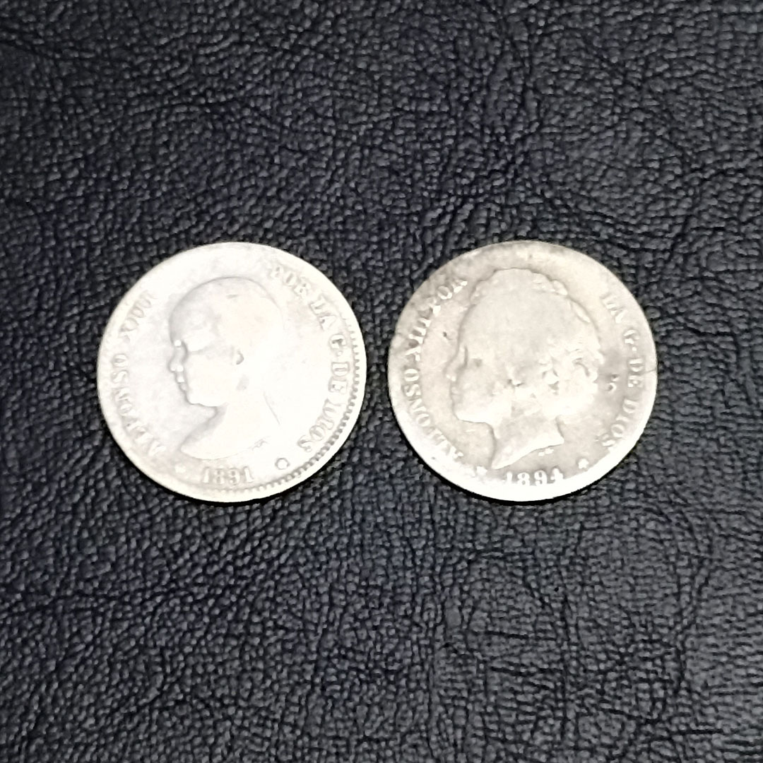 Peseta. AR. Lote de 2 monedas. 1891 y 1894. Estrellas no visibles. (BC...