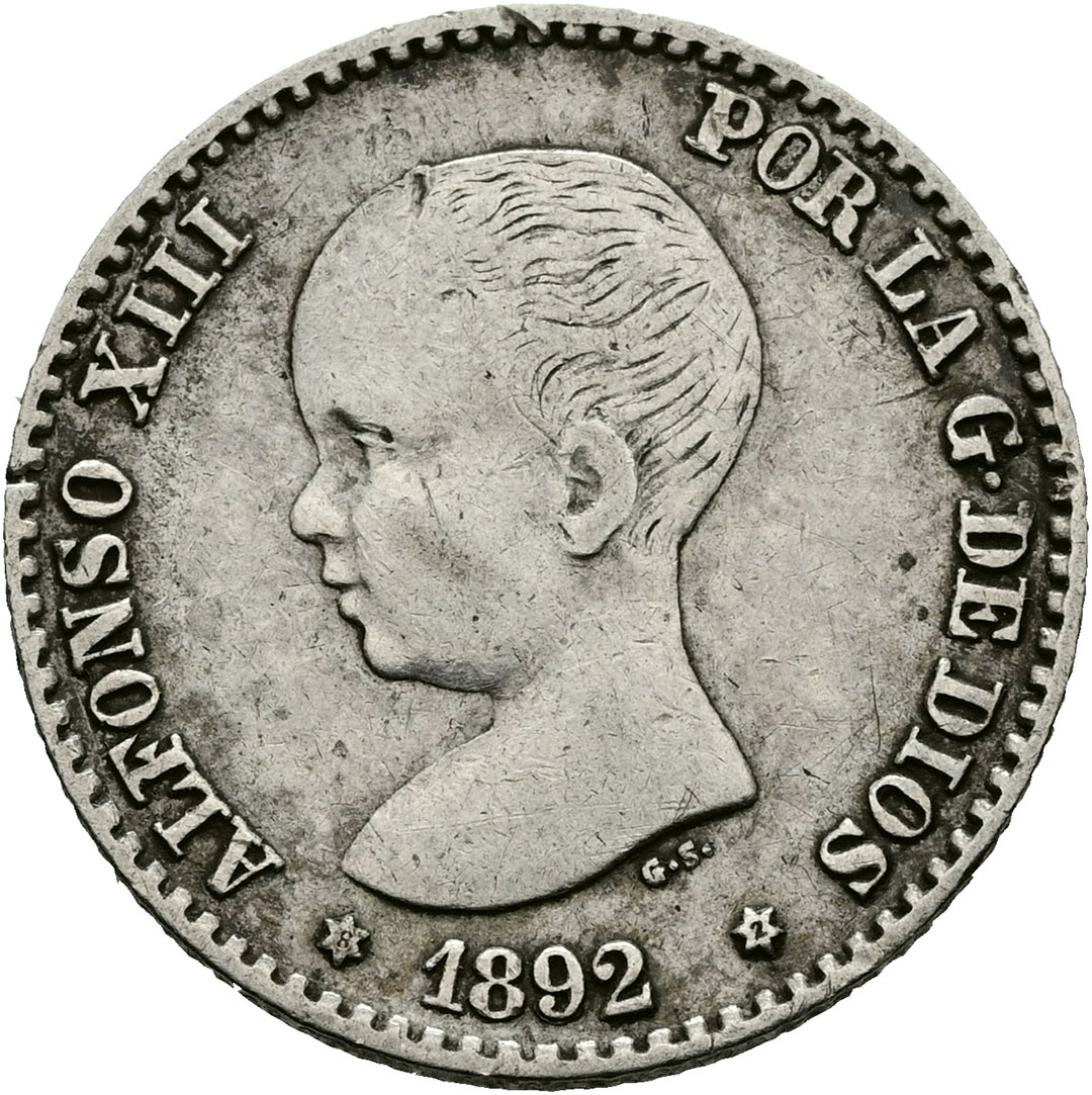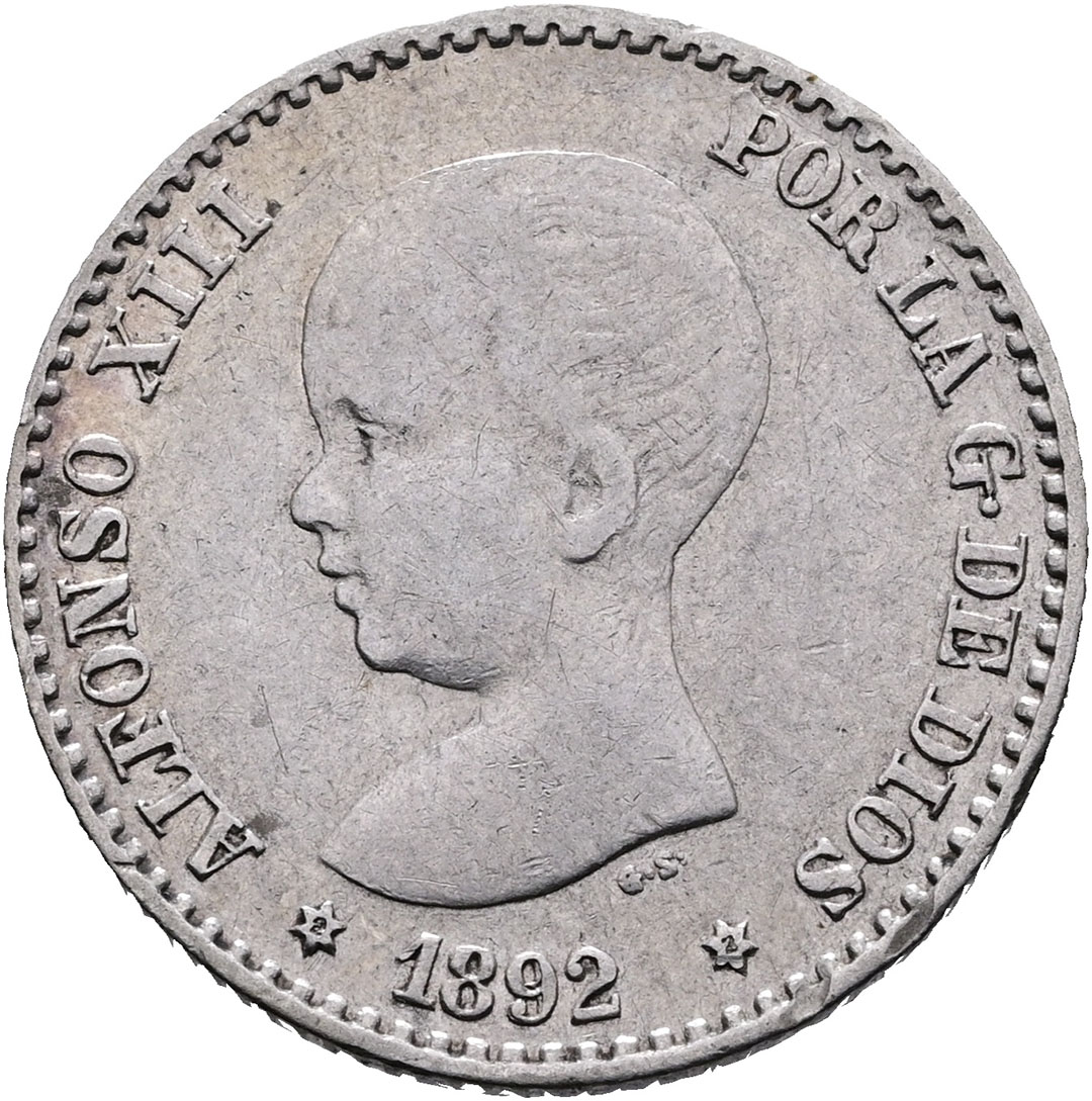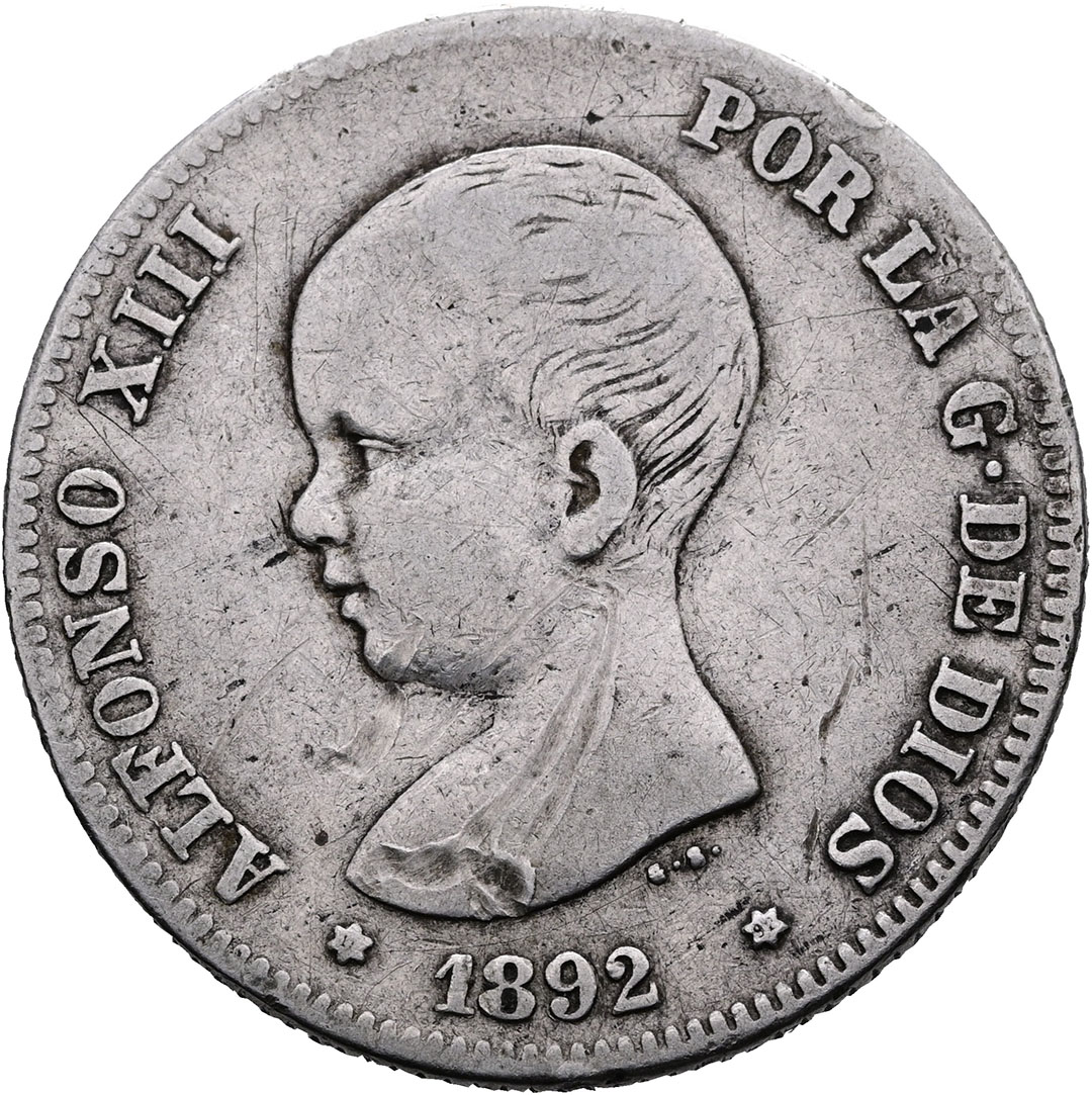 2 Pesetas. AR. 1892 *18-92 PGM. 10.00g. Cal.85. Primera estrella muy d...