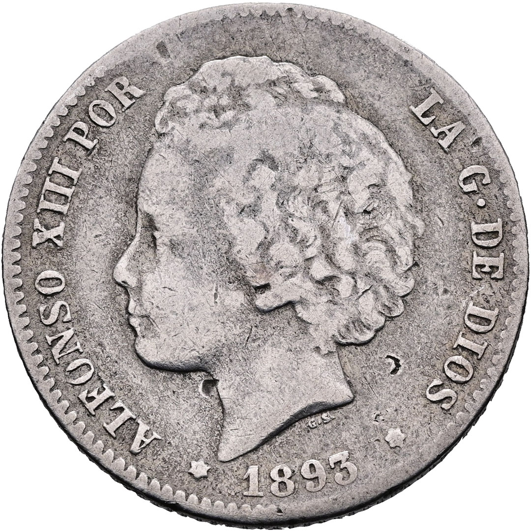Peseta. AR. 1893 PGL. 4.85g. Cal.54. Estrellas no visibles. (BC). ...