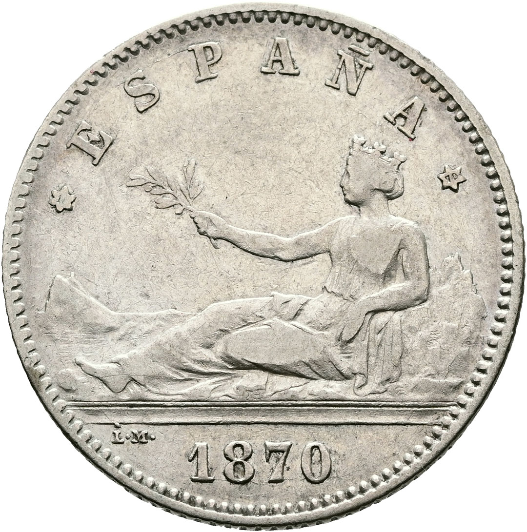 Peseta. AR. 1870 *18-70 SNM. 4.97g. Cal.18. Primera estrella no visibl...
