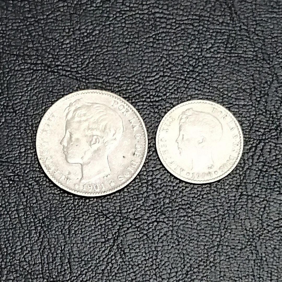 Lote de 2 monedas. AR. 50 Céntimos 1900 y Peseta 1901. Estrellas no v...