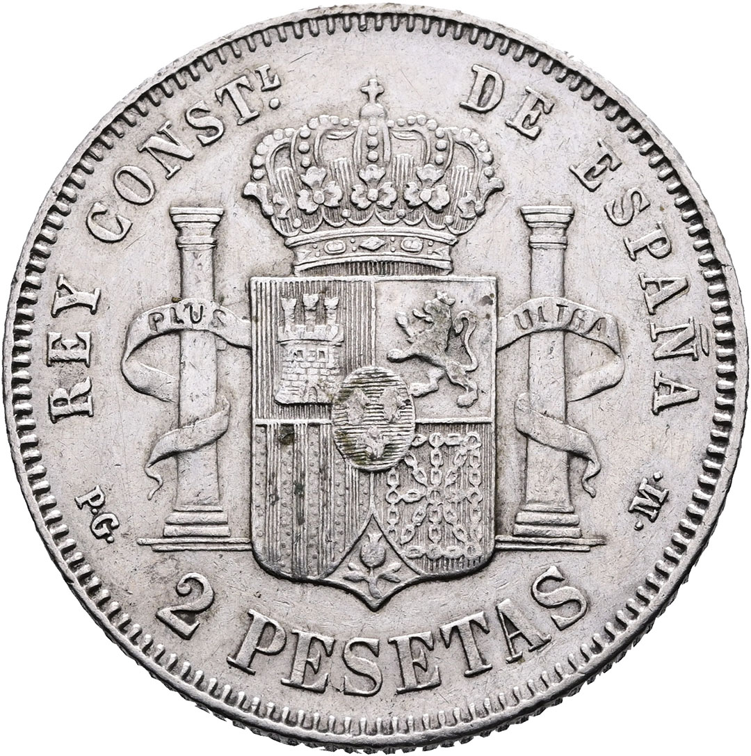 2 Pesetas. AR. 1891 PGM. 9.99g. Cal.84. Estrellas no visibles. Tonalid...