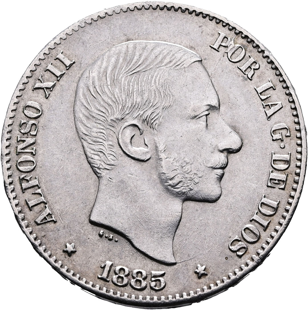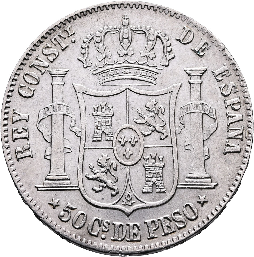 50 Centavos de Peso. AR. Manila. 1885. 12.97g. Cal.124. MBC+. ...