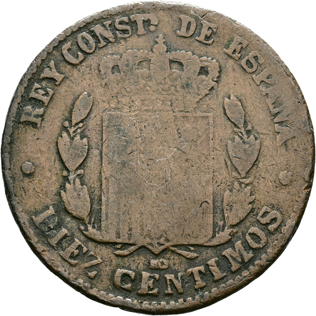 10 Céntimos. AE. 1879. Barcelona MO. Falsa de época. 8.32g. Barrera ...