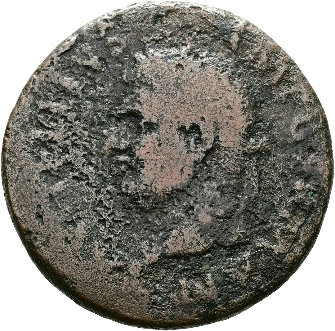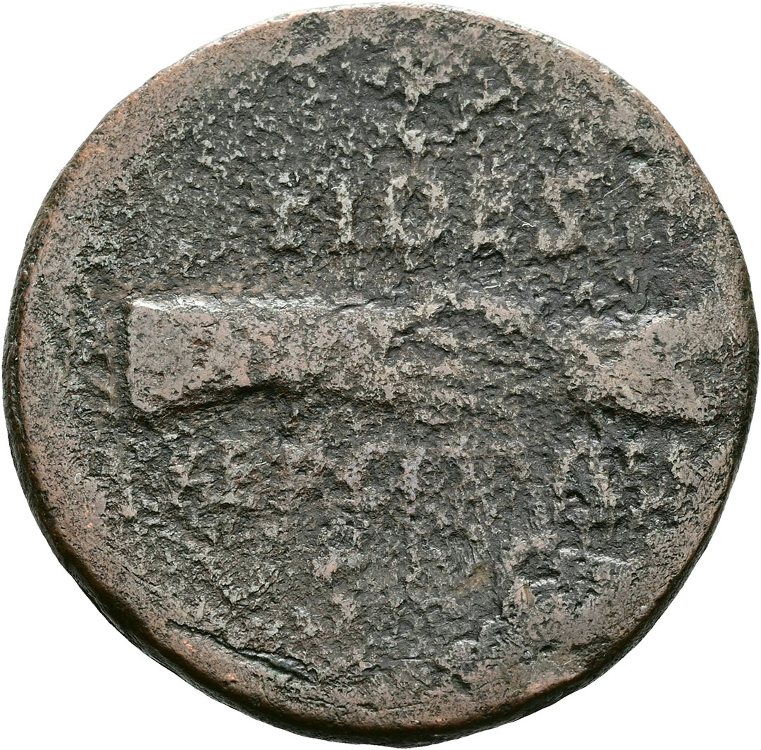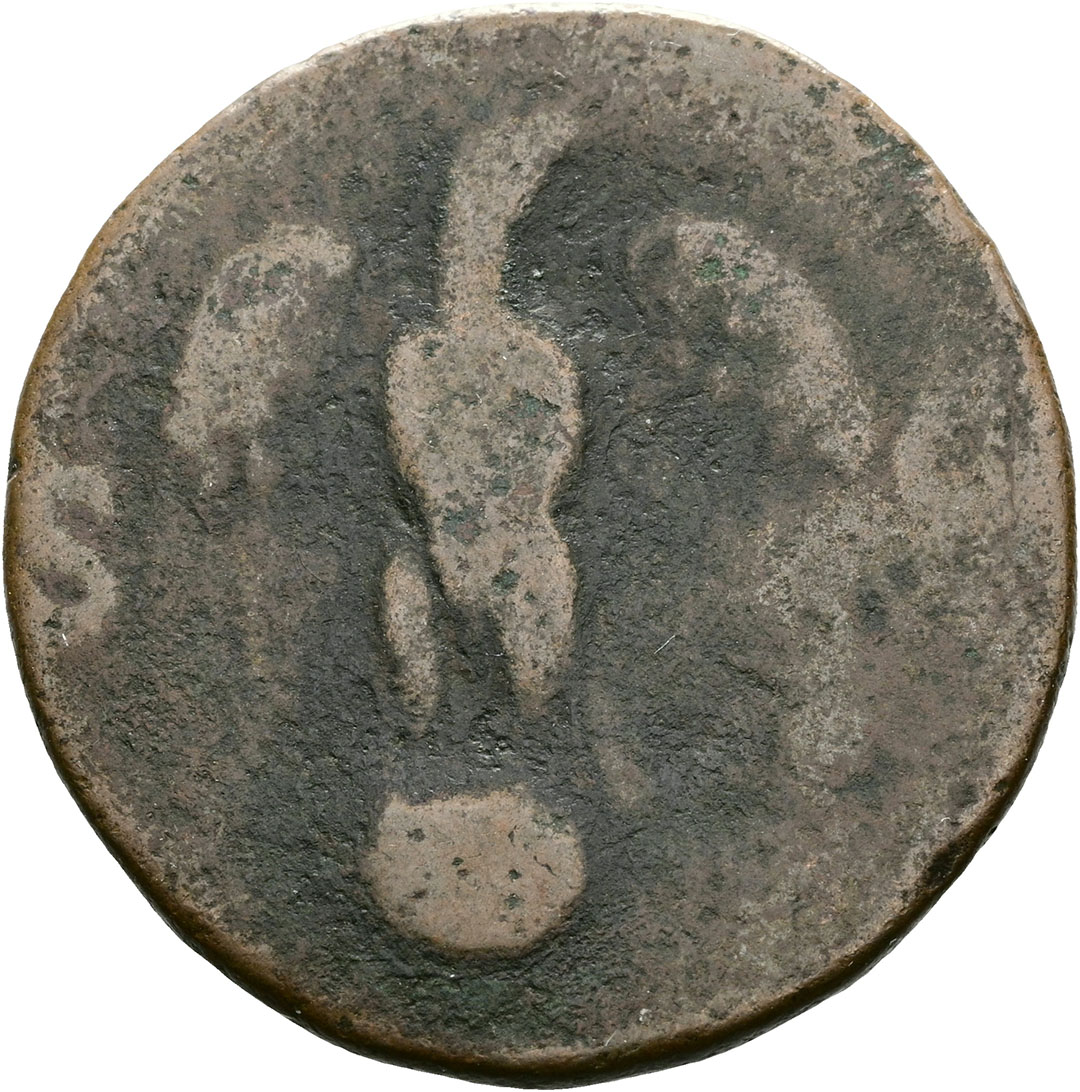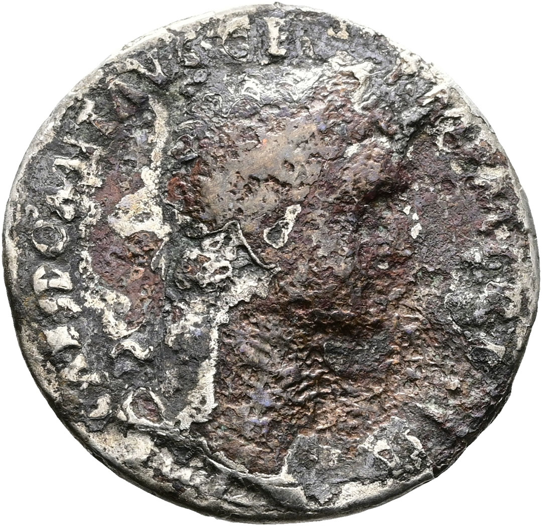 Denario. AE. (81-96). Falso de época (forrado, conservando parte del ...