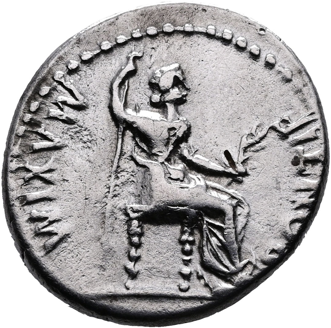 Denario. AR. Lugdunum. (14-36). R/PONTIF. MAXIM. 3.75g. RIC.30. Escasa...