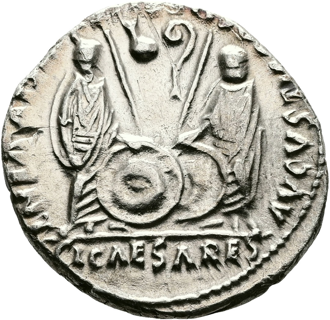 Denario. AR. Lugdunum. (27 a.C.-14 d.C.). R/Cayo y Lucio césares en m...