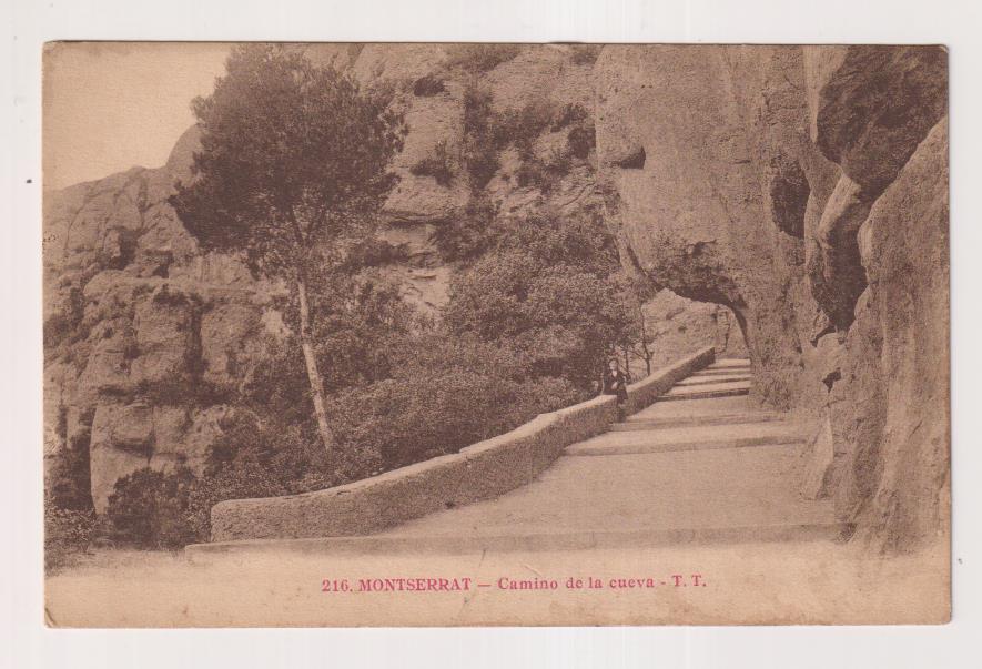 "Montserrat. camino de la cueva. Fototipia A. Thiriat. Publicidad de Sastrería ""La Serpentina"" Barcelona"